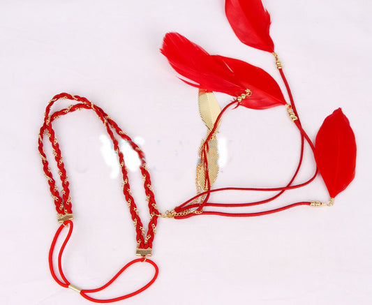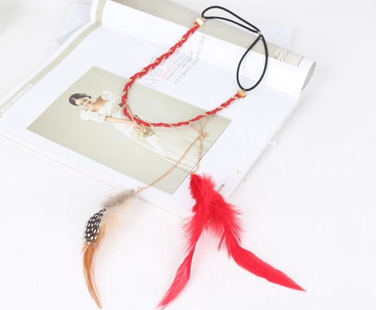 Gold chain red feather elastic headband
