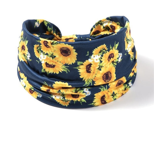2-way Sun flowers print knotted bandanna headband
