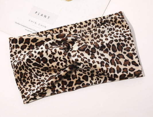 2-way white spotted leopard prints knotted bandanna headband