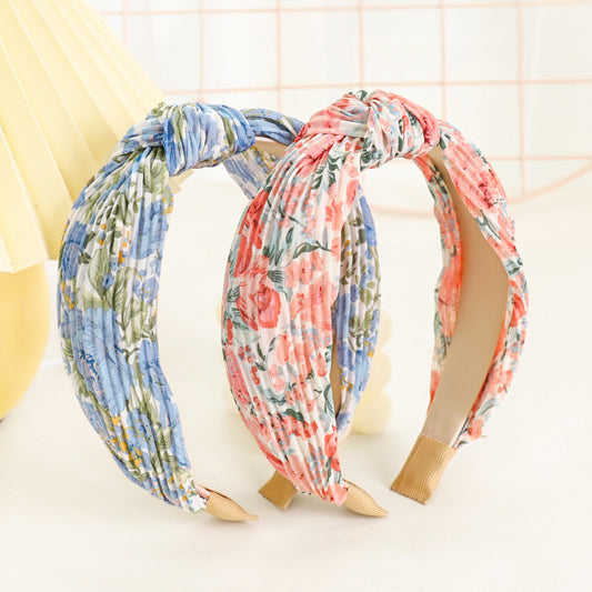 Pleated chiffon tie-dye printed knotted headband