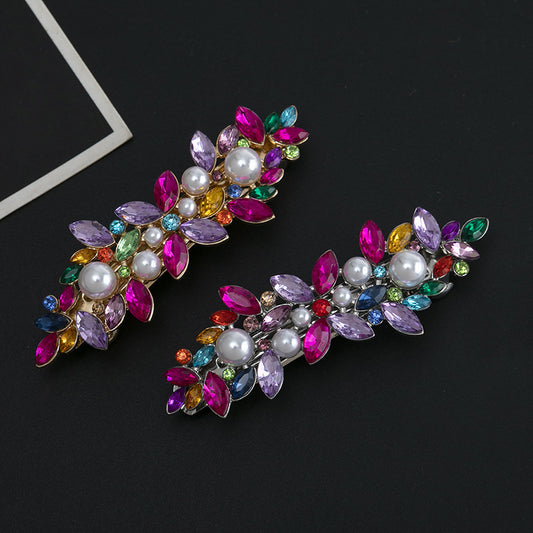 Rhinestones floral metal hair barrette