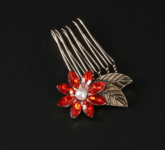 Rhinestones flower small hair comb