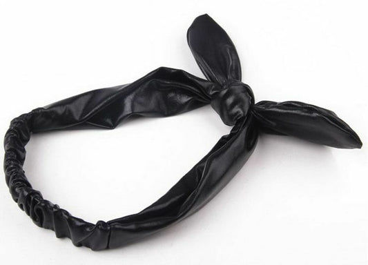Soft leather bow-knot stretch headband