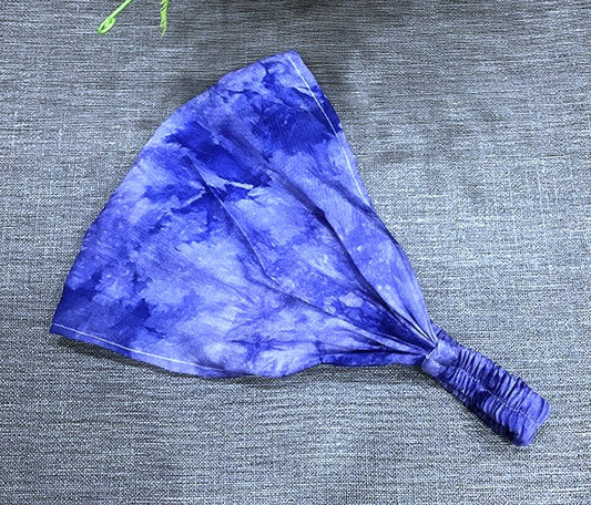 Blue tie-dye extra wide bandanna headband