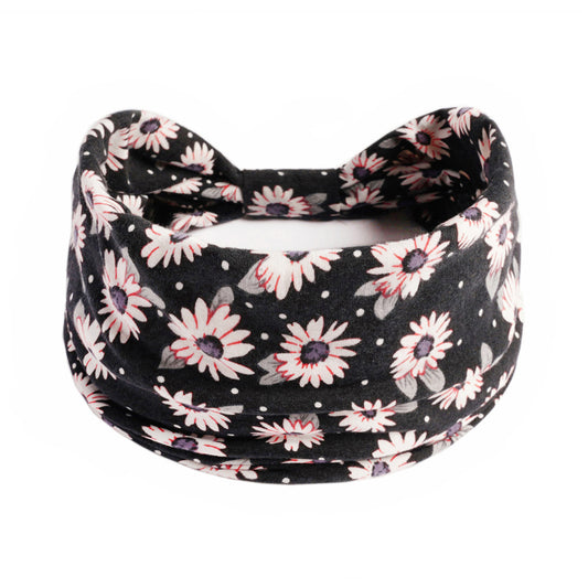 Little daisy flowers black thick elastic headband