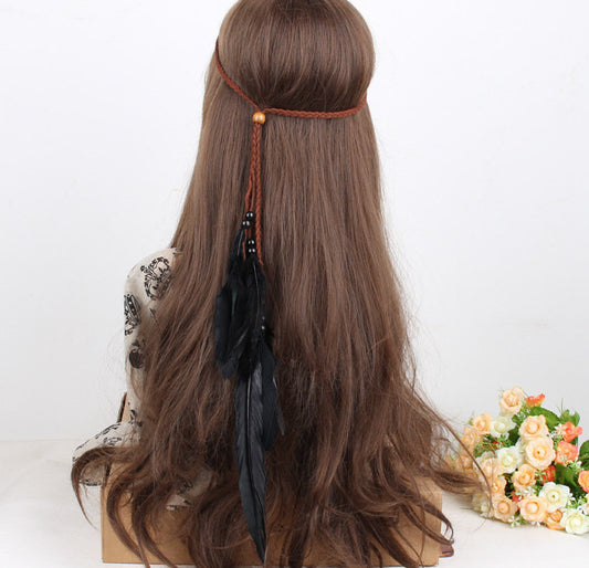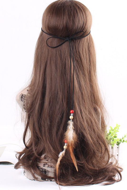 Wooden beads feather elastic headband