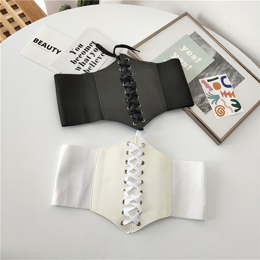 Wide corset front elastic belt