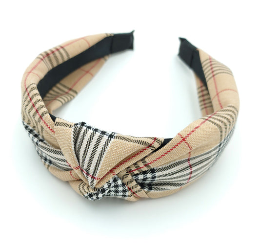 Scotch plaids knotted headband in beige
