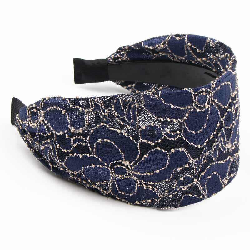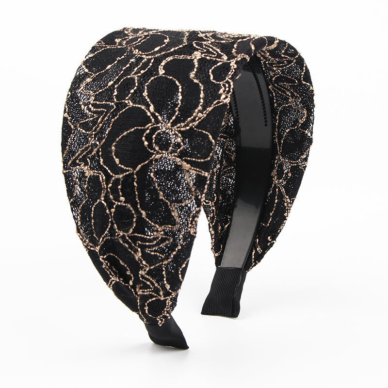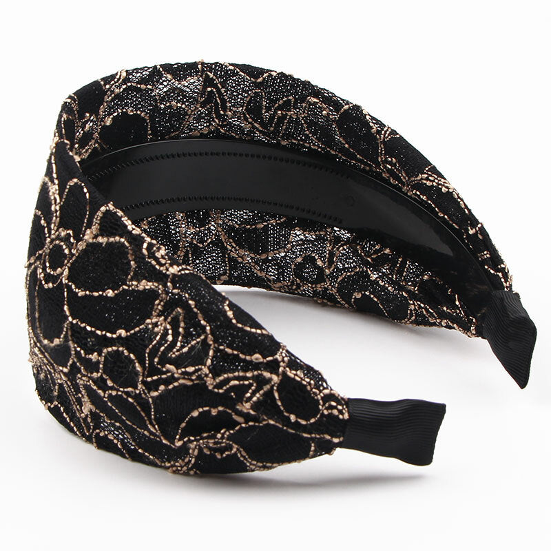 The 7cm-wide floral lace headband is a versatile accessory that is suitable for any occasion. Made from lightweight materials, it offers both style and comfort for all-day wear. The addition of golden threads adds a touch of elegance to this headband, making it a must-have for any fashionista.