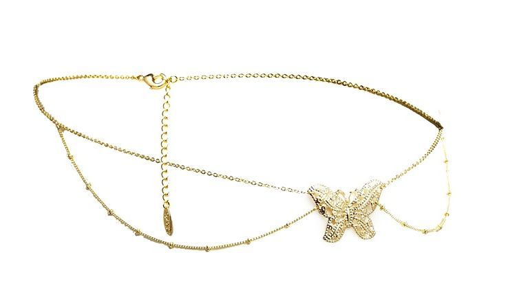 Our Beautiful Butterfly Gold Chain Head Chain features a stunning butterfly design adorned with delicate golden beads chains. With an extension chain, this piece is fully adjustable, ensuring a perfect fit for all sizes.