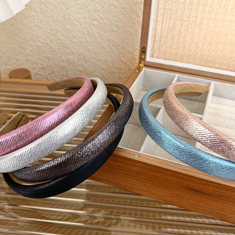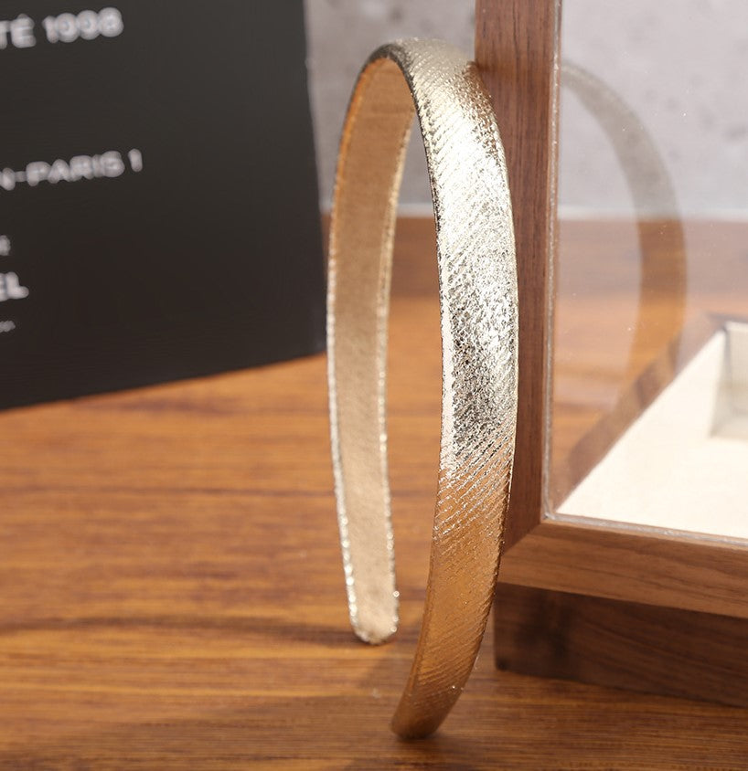 Constructed from glossy metallic effect fabric, the Bling bling slim headband features a non-slip suede inner liner, making it one of the most comfortable headbands on the market. With a width of 1.5cm and a one size fits all design, you'll never have to worry about a headache or adjusting your headband again.