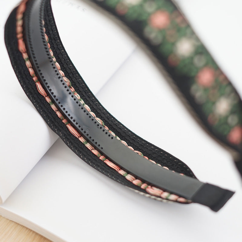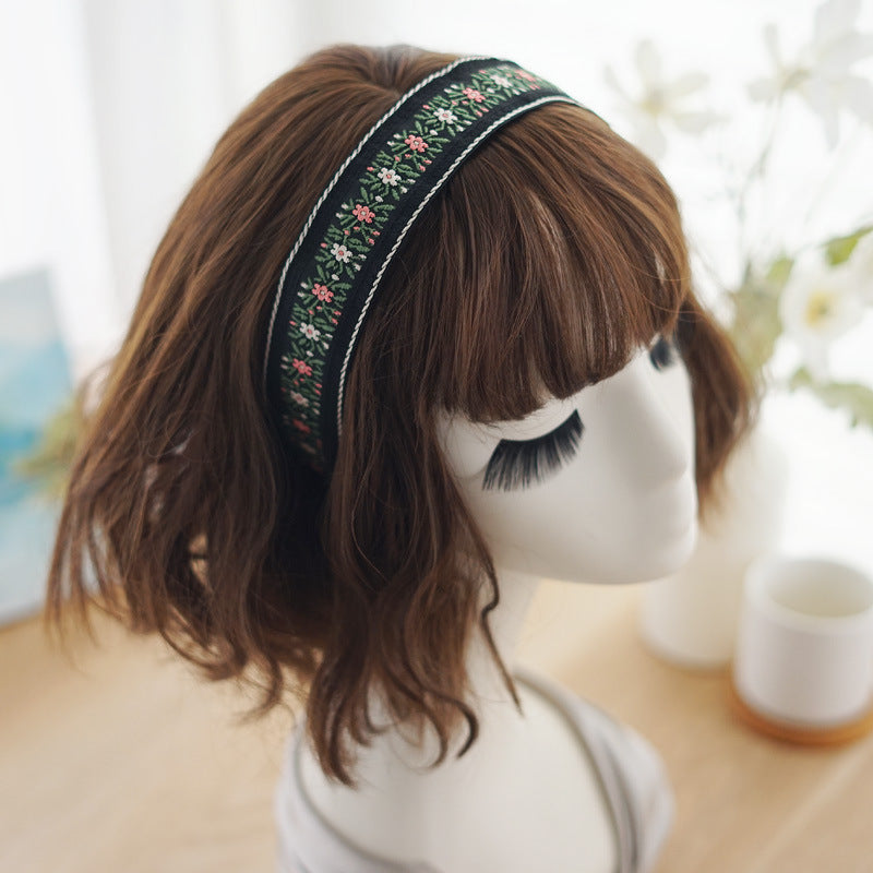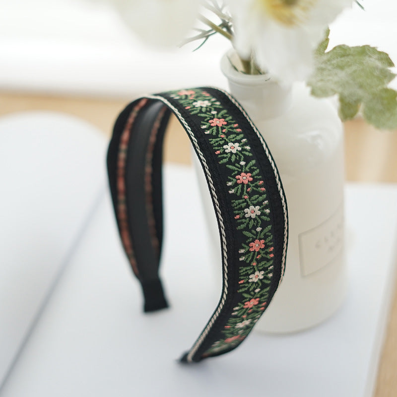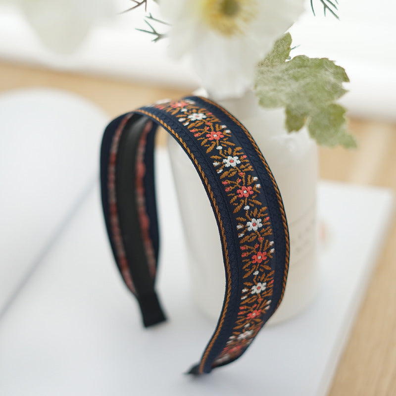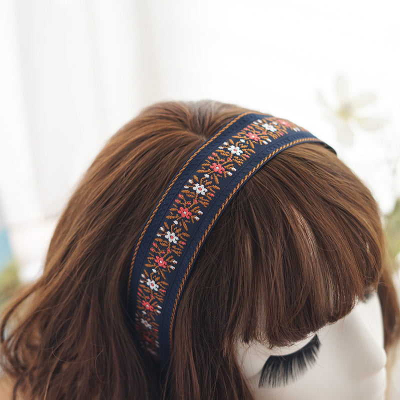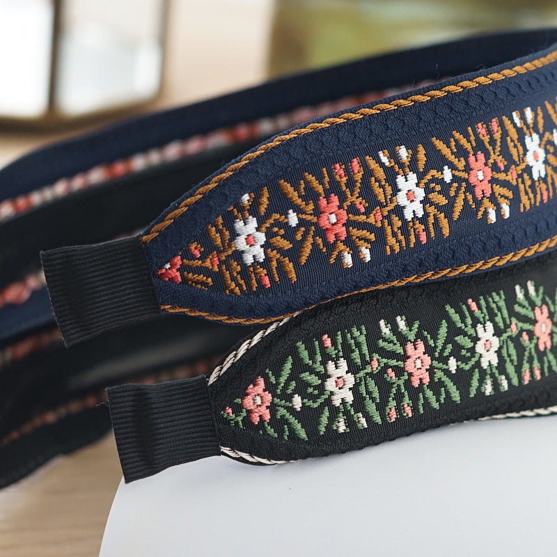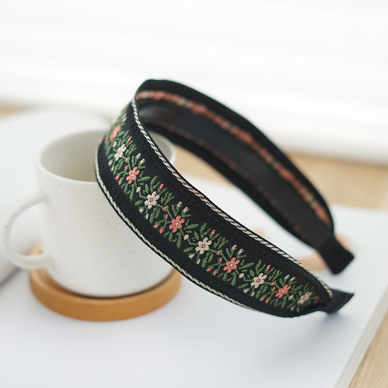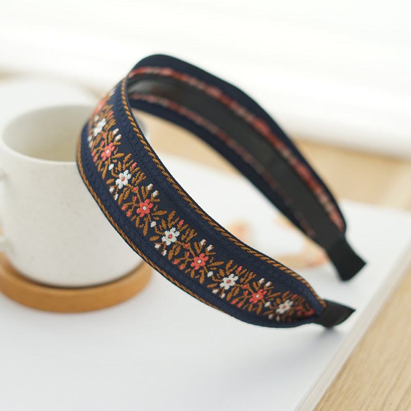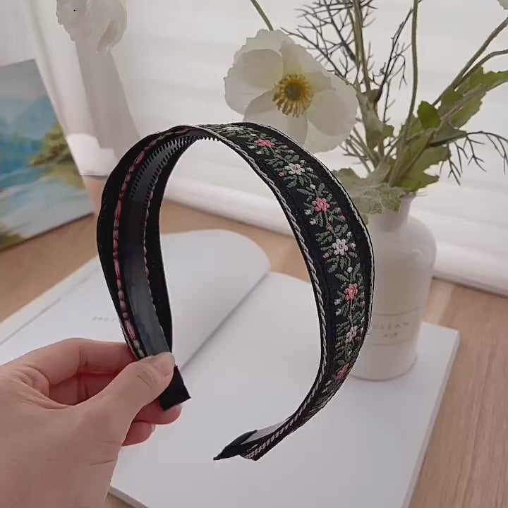 The headband boasts intricate floral embroidery on a soft, 3cm wide cotton fabric that is gentle on skin. It also features a soft acrylic inner band with small teeth for a secure and comfortable fit. With one size fitting most, this headband provides easy and effortless wear.