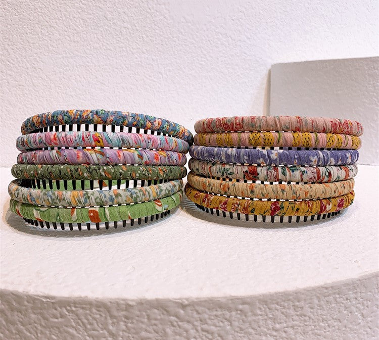Floral prints ruched headband with teeth