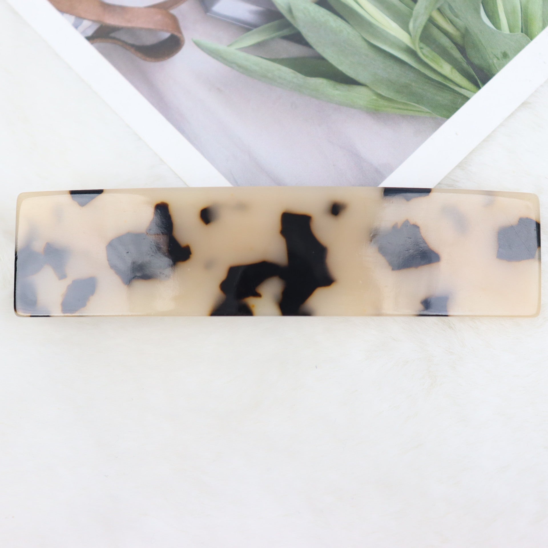 Discover the advantages of our Large resin hair barrette in a variety of colours. The top barrette measures 10.4cm x 2.5cm, while the bottom non-slip barrette is 8cm long, ideal for thicker hair. Crafted from high-quality resin material, this hair accessory is both durable and fashionable. Keep your perfect hairstyle in place all day with this practical hair accessory.
