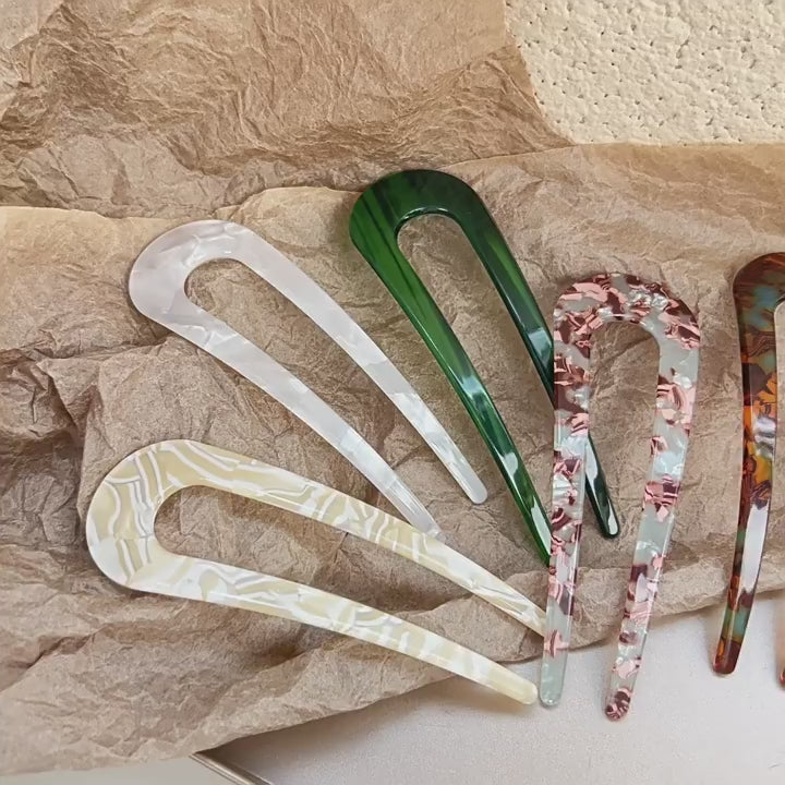 Engineered for performance, these resin hair forks deliver exceptional grip and stability for thick, voluminous hair. Measuring 12.9cm in length and 4.4cm in width, they combine substantial size with refined craftsmanship. The robust resin construction ensures lasting reliability, while the generous dimensions provide the leverage needed for secure, all-day hold. A sophisticated accessory that balances functionality with understated elegance.
