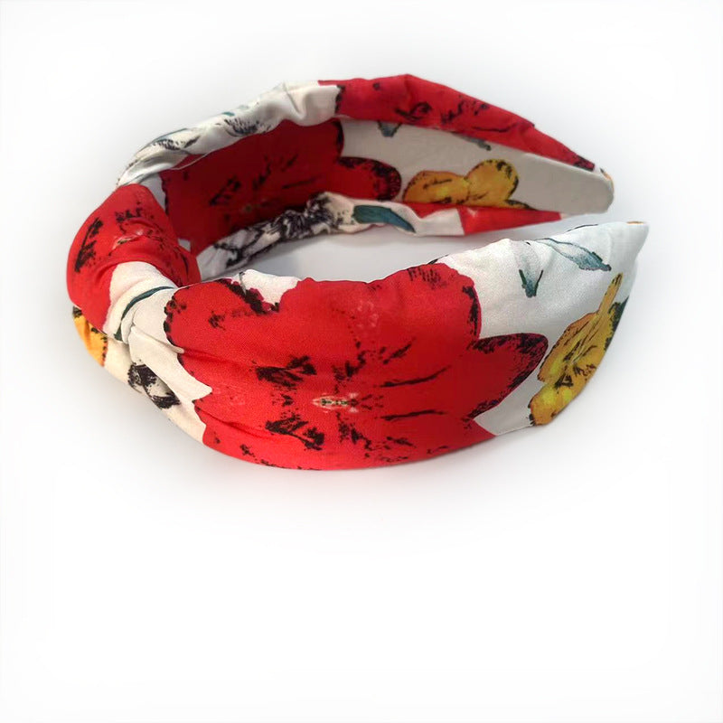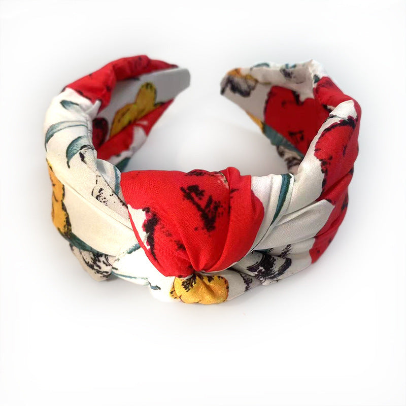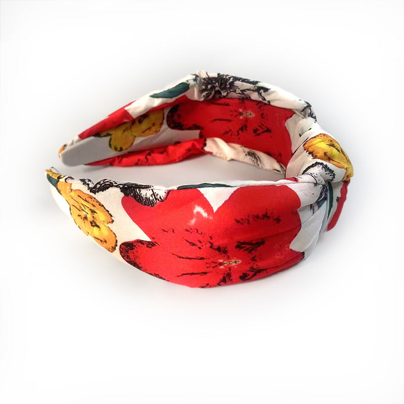 Elevate your hairstyle and keep it in place with our Red Floral knotted headband made of cotton. Measuring 7cm wide, this headband is designed with sponge-filled chiffon fabric to maintain its shape. The soft, cotton material showcases a beautiful floral pattern, adding a touch of charm and adaptability to any ensemble.