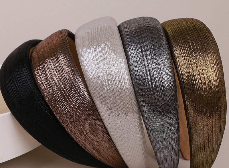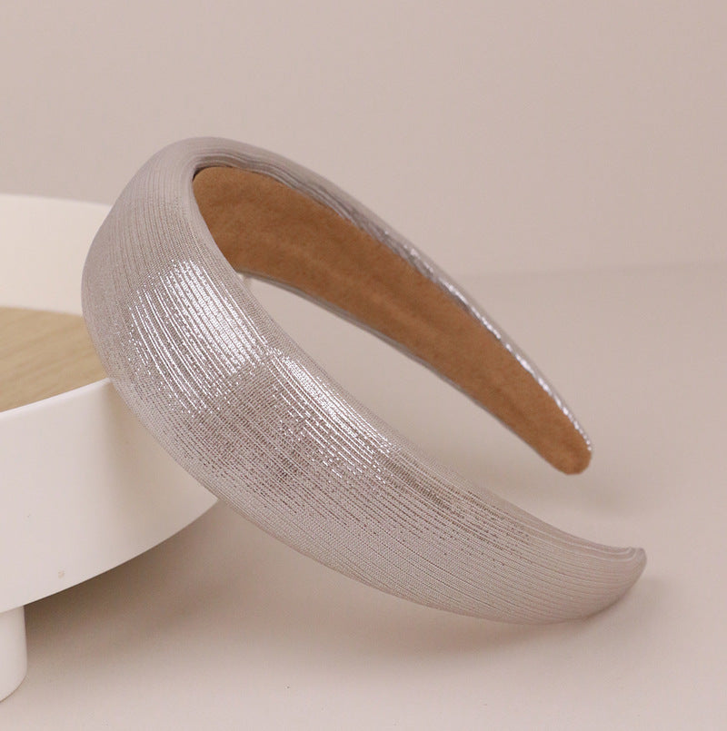 Made with a glossy metallic fabric and non-slip suede inner liner, this 4cm-wide headband is perfect for holding back hair. Plus, its one size fits most design ensures a comfortable fit for all.