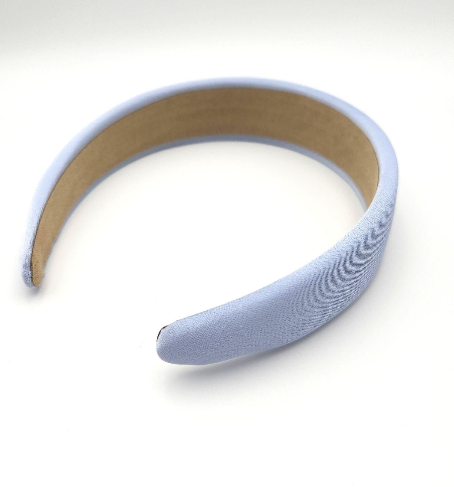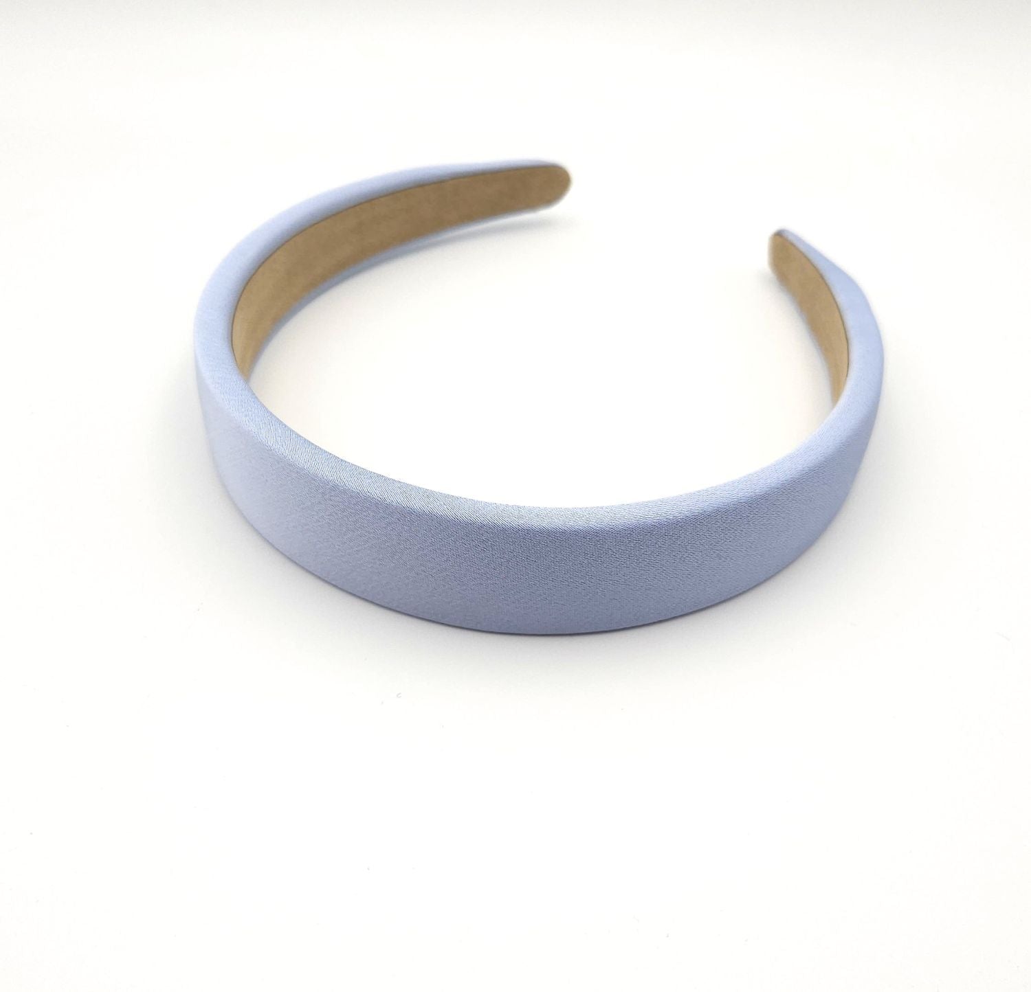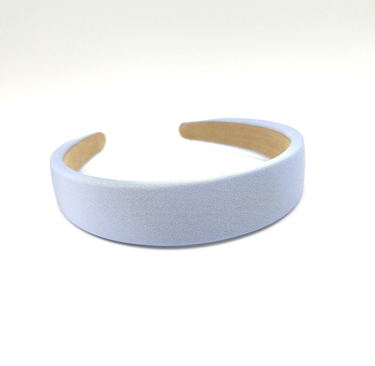 Crafted in grey-blue chiffon, this 3cm wide headband features a 0.8cm lightly padded height and a durable non-slip suede lining. The flexible acrylic frame provides a secure yet comfortable fit, making it a reliable choice for long-lasting wear.